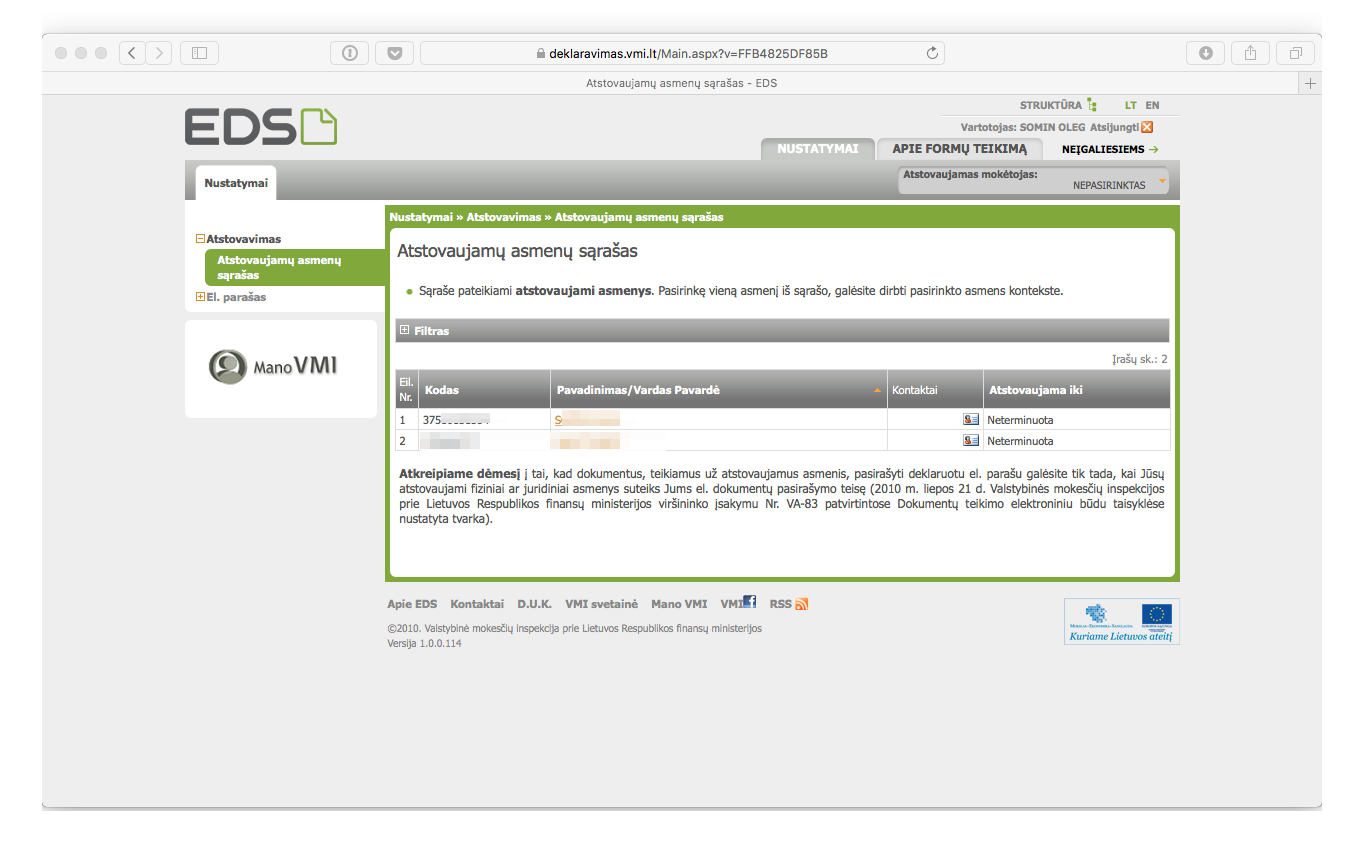 - Сохраните заполненную форму, нажав «Išsaugoti», и подтвердите подачу декларации.